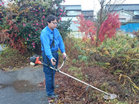 チップソー(鉄の刃)で刈るのはもちろん、ビニールヒモでのさらに細かい草刈もできます。また草取りはスタッフの手により、草を1本1本丁寧に抜かせていただきます。
